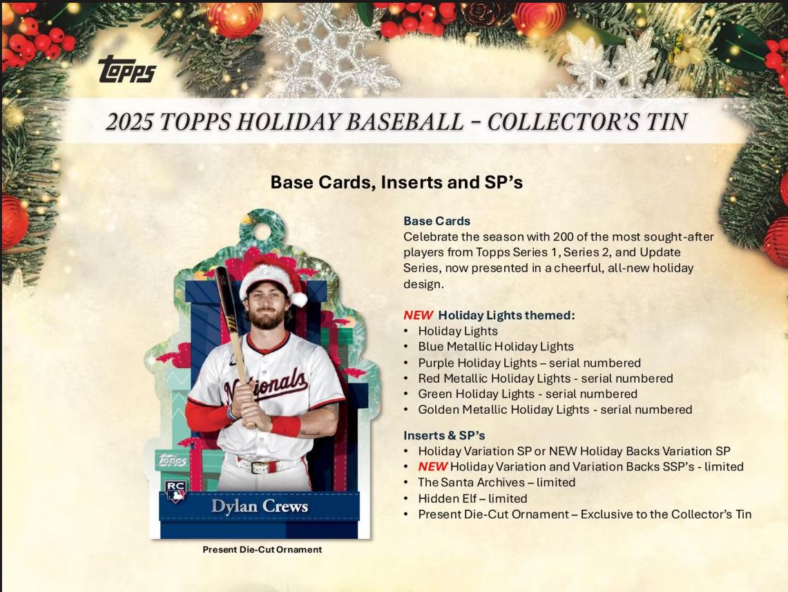 The Collector Tins return for the 2025 holiday season. Each festive themed tin features 1 pack with 59 cards and a variety of exclusive content.