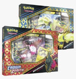 Two previously unknown Legendary Pokémon have awakened in the frozen tundra! Discover the power of the Lightning-type Regieleki or the Dragon-type Regidrago in these two collections. The star Pokémon appears as a ready-to-play foil promo card and an oversize card for display, accompanied by a foil card featuring its counterpart and a handful of booster packs from the special Pokémon TCG: Crown Zenith expansion.